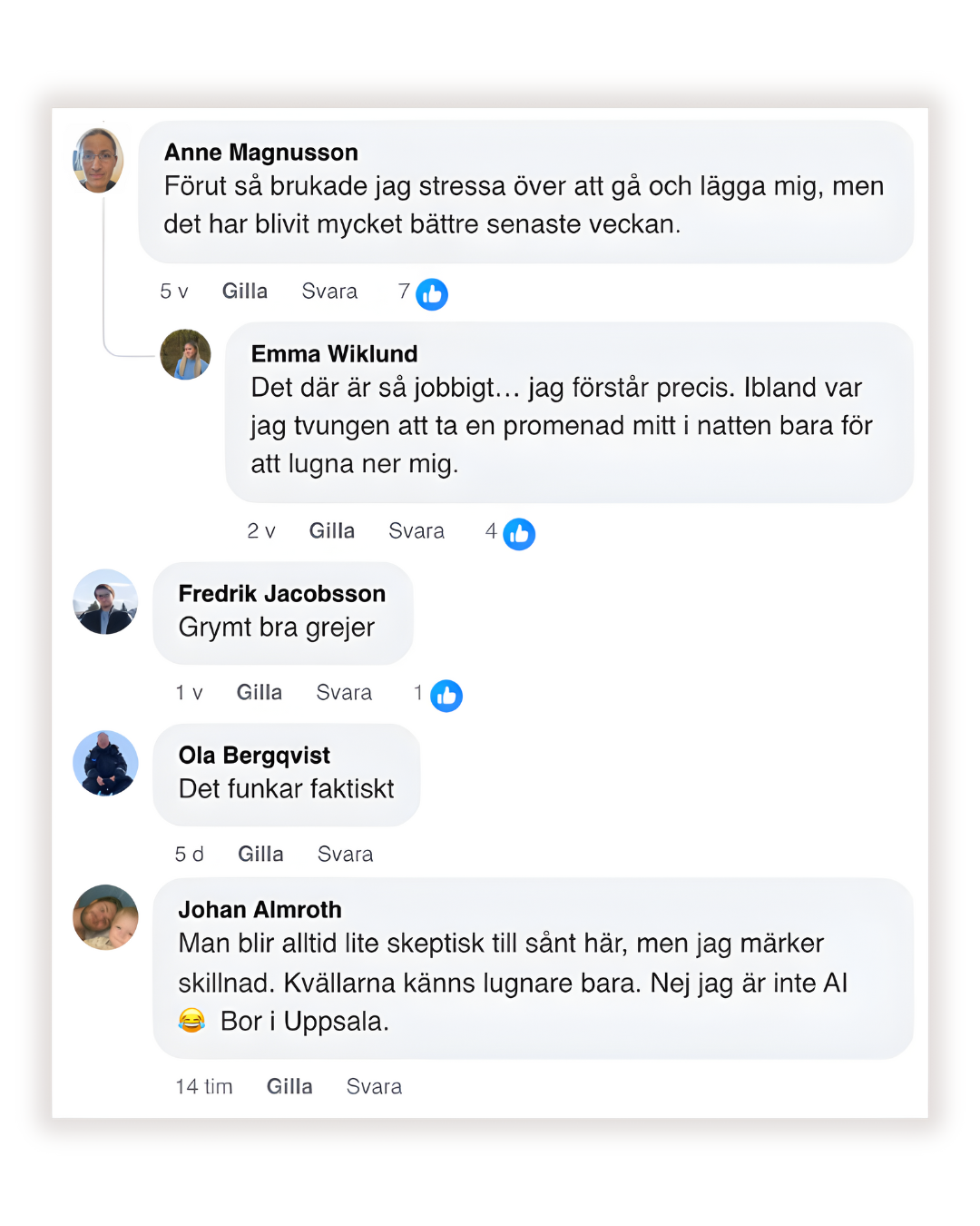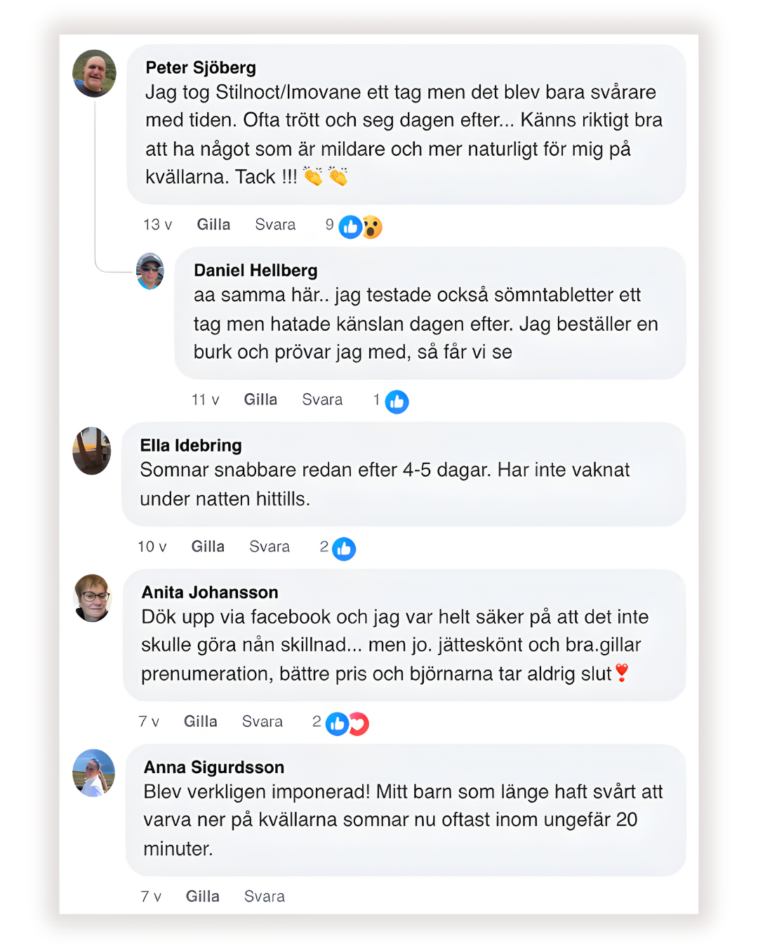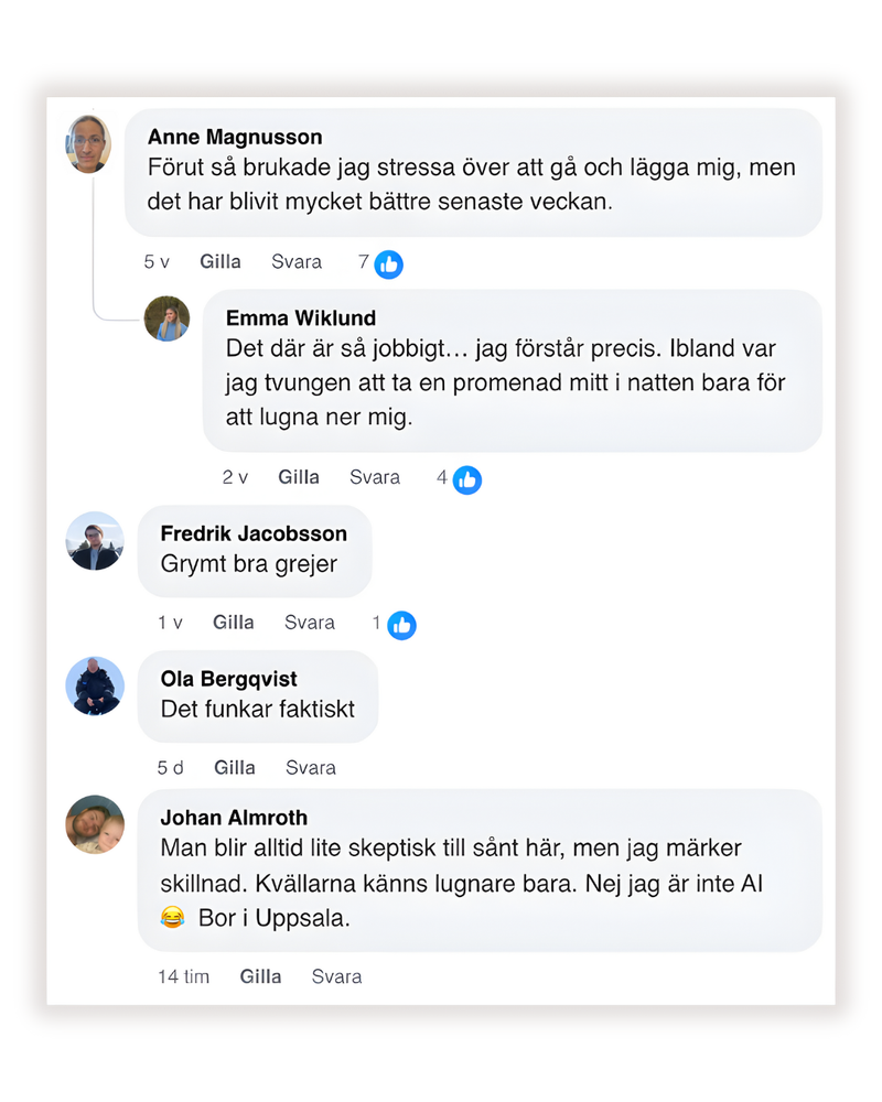 Samtliga ingredienser är helt naturliga som hjälper kroppen att varna ner inför sömn: